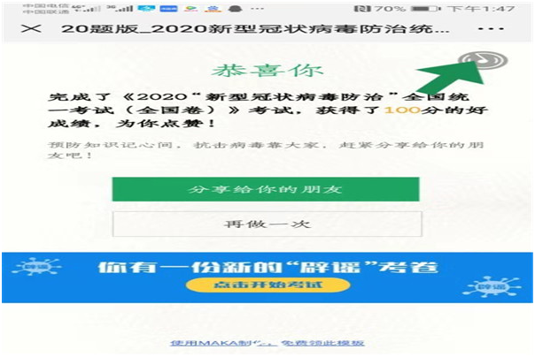 公司纪委书记陈亚军以《新型冠状病毒肺炎防控知识手册》为参考,,,针对易混淆的、、、关键的疫情防控知识,,,进行考试题目设计,,借助微信平台发放答题链接,,,呼吁全体党员干部主动学习防疫知识,,积极参与竞赛答题。。短短半天时间,,,尊龙时凯集团50余名党员参与答题,,,95%获得100分以上的好成绩。。疫情就是责任,,,,防控就是命令,,,在这特殊时期,,通过此次知识竞赛活动的开展,,,,全体党员干部了解当前的疫情现状,,学习疫情相关防护知识,,,起到了引领大家正确认识疫情,,防控疫情的作用。。。。